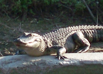 Bitte nicht füttern: Der Alligator untem im Bild lebt nicht in unserem Garten sondern neben dem Parkplatz der Einkaufmall.